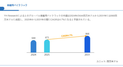 車載用バイクラック市場規模の成長見通し:2031年には868百万米...