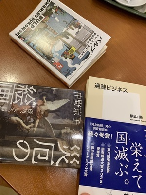 私は「過疎ビジネス」、妻は「災厄の絵画史」、Sさんは「パルプ」をそれぞれ持ち寄ってじっくり読書を楽しみました!