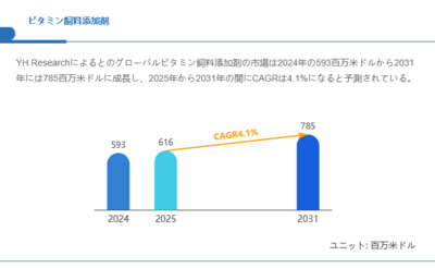 2025年10月24日、YH Research株式会社(本社:東京都中央区)は、調査レポート「グローバルビタミン飼料添加剤市場のトップ企業ランキングと市場シェア 2025」を発行しました。本レポートでは、2020年から203...