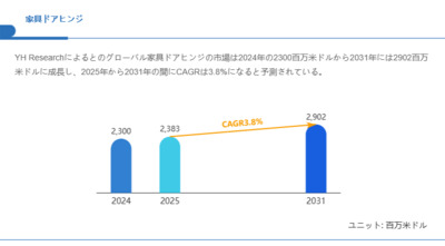 2025年10月15日、YH Research株式会社(本社:東京都中央区)は、調査レポート「グローバル家具ドアヒンジ市場のトップ企業ランキングと市場シェア 2025」を発行しました。本レポートでは、2020年から2031年...
