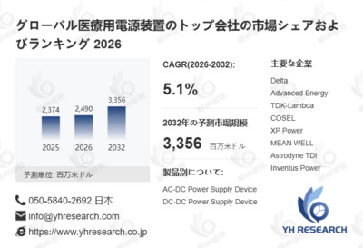 YH Research株式会社(東京都中央区)は、最新の調査レポート「グローバル医療用電源装置のトップ会社の市場シェアおよびランキング 2026」を、202...