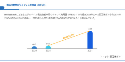 電気自動車用ワイヤレス充電器(WEVC)市場、CAGR33.9%で拡大し2031年には349百万米ドルへ