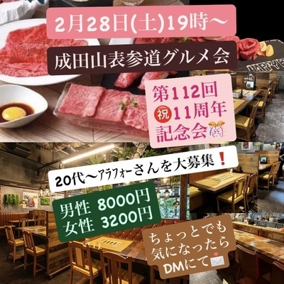 【現29名/募集中】2/28(土)19時~ 成田グルメ会 今年のグルメ会周年記念は王道焼肉でみなさんとお祝いしましょ~🥂